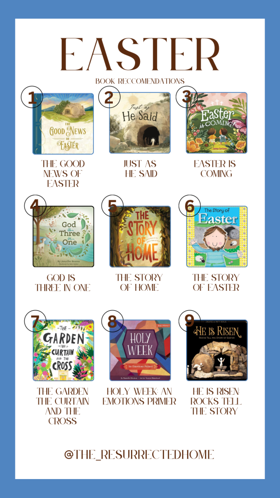 Below are affiliate links to my all time favorite Easter books! The books included in part one teach the biblical Resurrection story in storybook format. Be on the lookout for Book Recs (Part Two) for best supporting picture books that bolster the Resurrection story not just at Easter time, but all year long.